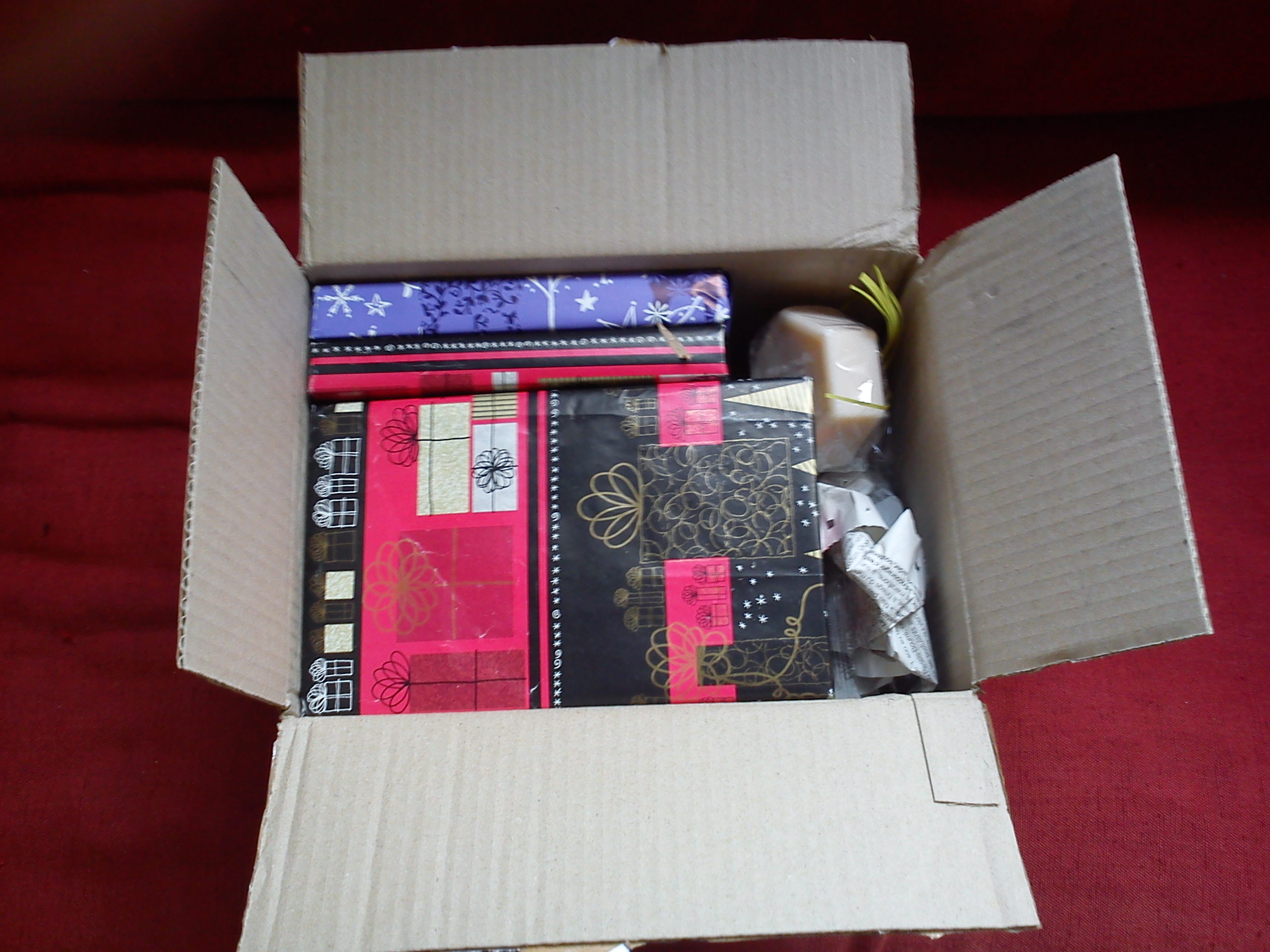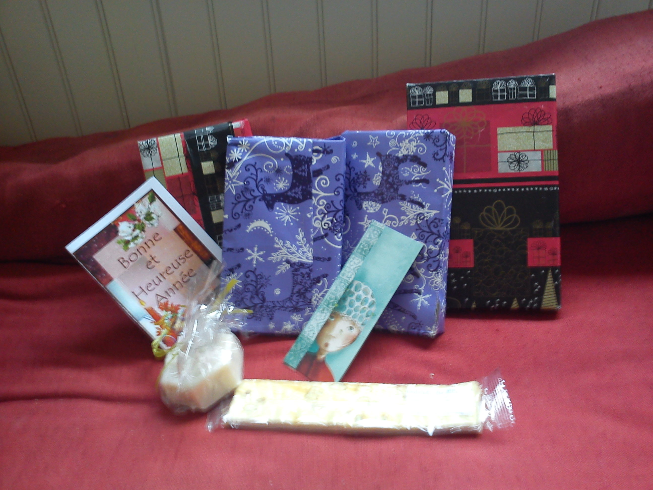Après noël, c’est nouvel an (voyez comme je connais mon calendrier !) et donc j’ai reçu le premier colis qui marque cet événement, celui de ma seconde NSP : Owilie, rencontrée sur le forum du sanctuaire des accros et mordus de lecture. Et j’ai été bien contente, contente ! (quand je vous dis que je suis pourrie gâtée).