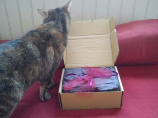 Le chat intrigué m’a aidée à l’ouvrir. Elle en a surtout profité pour renifler tout ce qu’elle pouvait !