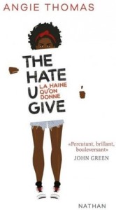 The hate U give d’Angie Thomas (Nathan le 5) Résumé : Starr a seize ans, elle est noire et vit dans un quartier difficile, rythmé par les guerres entre gangs, la drogue et les descentes de police. Tous les jours, elle rejoint son lycée blanc situé dans une banlieue chic ; tous les jours, elle fait le grand écart entre ses deux vies, ses deux mondes. Mais tout vole en éclats le soir où son ami d’enfance Khalil est tué. Sous ses yeux, de trois balles dans le dos. Par un policier trop nerveux. Starr est la seule témoin. Et tandis que son quartier s’embrase, tandis que la police cherche à enterrer l’affaire, tandis que les gangs font pression sur elle pour qu’elle se taise, Starr va apprendre à surmonter son deuil et sa colère ; et à redresser la tête.