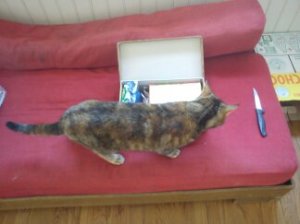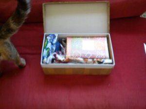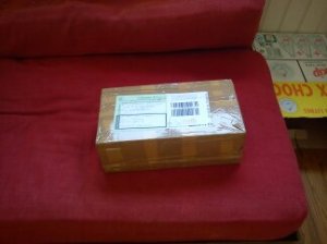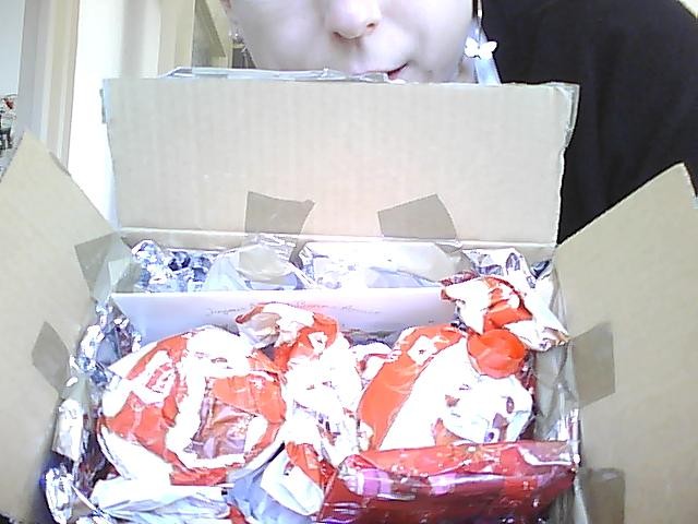 Le colis pris avec la webcam, ça rend pas très bien, mais Aurélie a fait ça très bien en faisant un fond au carton